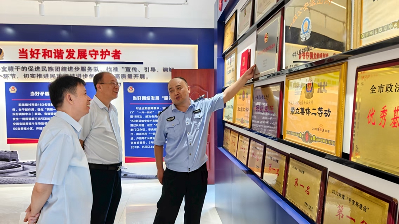 慰問組一行來到磨頭派出所,在民警的引導下,首先參觀了派出所文化長廊與榮譽展廳,詳細了解了磨頭派出所歷史沿革與取得榮譽。